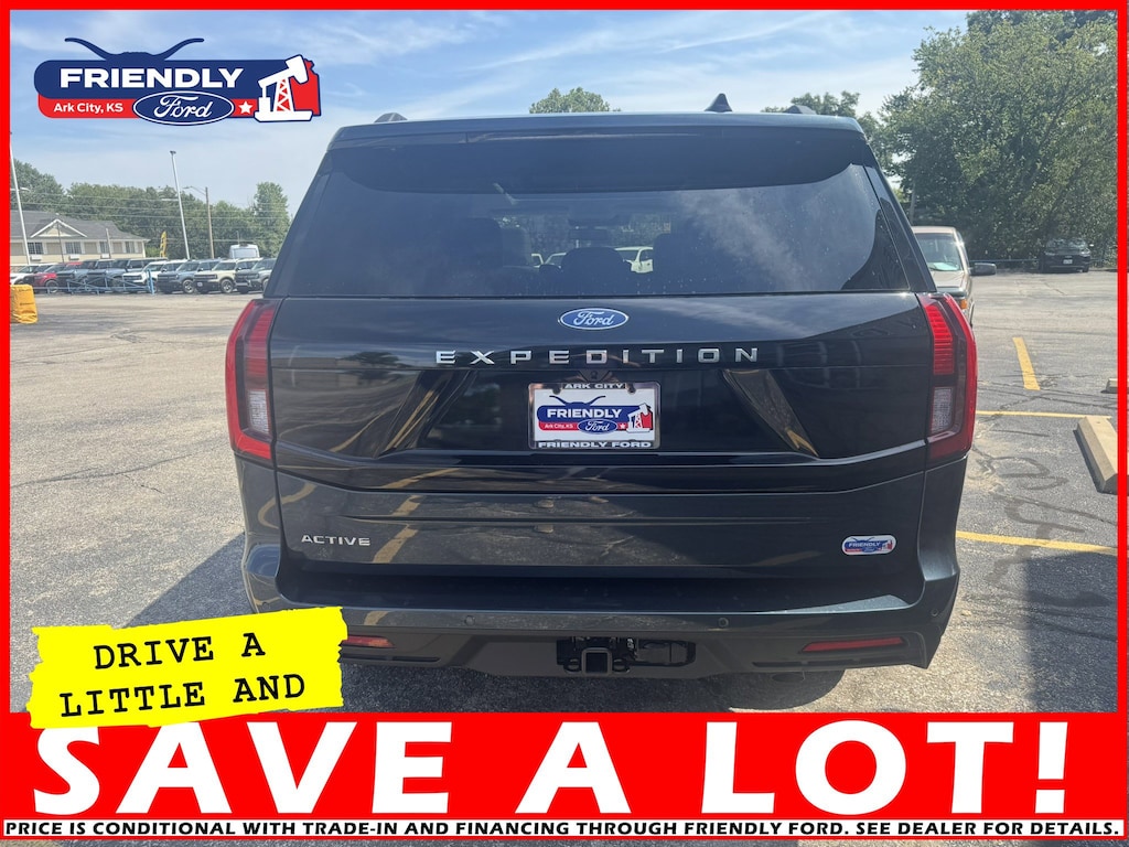 The 2025 Ford Expedition Active features a standard 3.5L EcoBoost V6 engine, a 10-speed automatic transmission, and a military-grade aluminum chassis for towing and hauling durability. Key features include a digital instrument panel and touchscreen, advanced Ford Co-Pilot360 technology, the innovative Split-Gate rear door for versatility, and the option for 4-wheel drive.