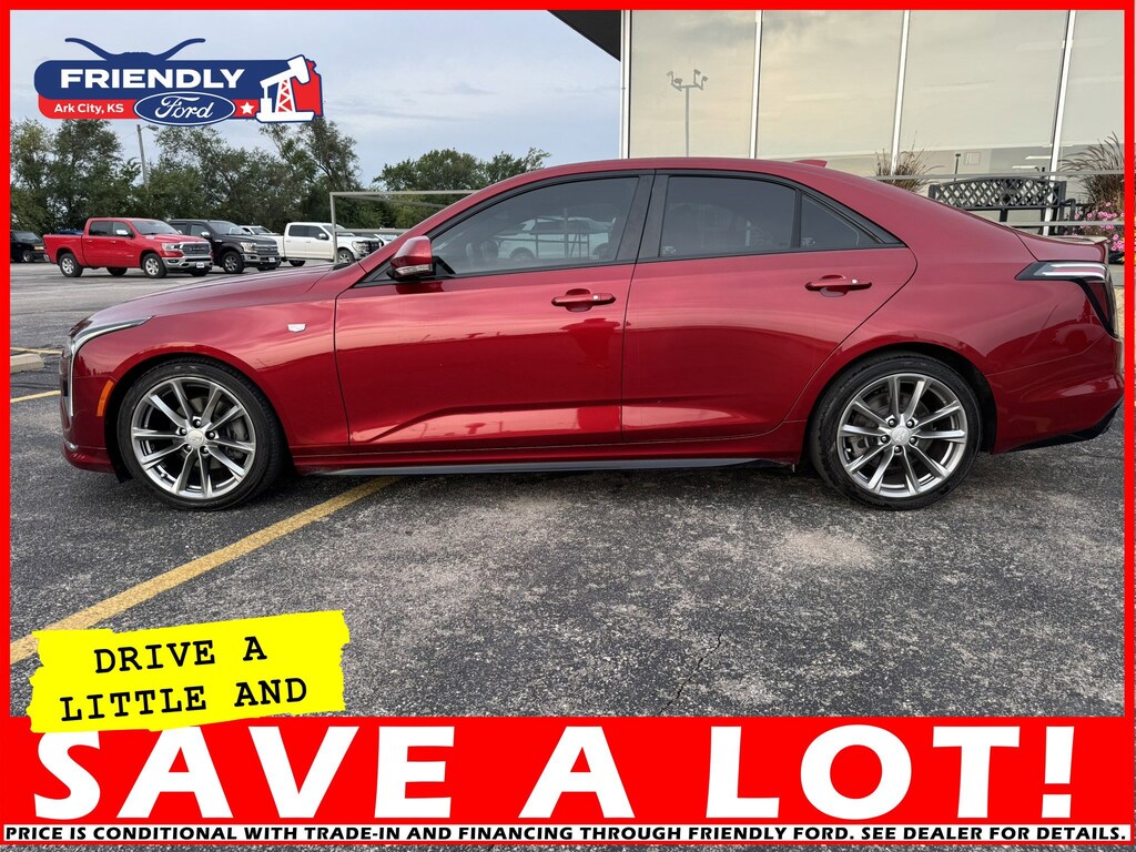 The 2021 Cadillac CT4 Sport comes standard with a 237-hp, 2.0L Turbocharged engine, an 8-speed automatic transmission, and rear-wheel drive (RWD), offering 237 hp and 258 lb-ft of torque. Key features include performance-oriented styling with unique grilles, a rear spoiler, and sport seats, a 8-inch HD touchscreen, LED lighting, and advanced safety features like Automatic Emergency Braking and a Safety Alert Seat. Enhanced performance aspects include a dimpled, leather-wrapped steering wheel with magnesium paddle shifters, and available Brembo V Performance front brakes.