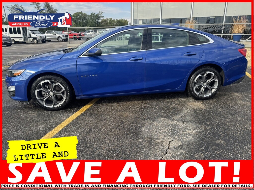 The 2023 Chevrolet Malibu LT 1LT is a midsize sedan powered by a 1.5L turbocharged engine with 160 horsepower, paired with a CVT and front-wheel drive for 30 combined MPG. Standard features on the LT trim include a comfortable ride, roomy cabin, 8-inch touchscreen infotainment with wireless Apple CarPlay/Android Auto, a rearview camera, and advanced safety features like forward collision mitigation and automatic high beams. Key features specific to the LT trim include heated front seats, dual-zone climate control, a power-adjustable driver's seat, and remote start, making it a well-equipped mid-level option in the lineup.