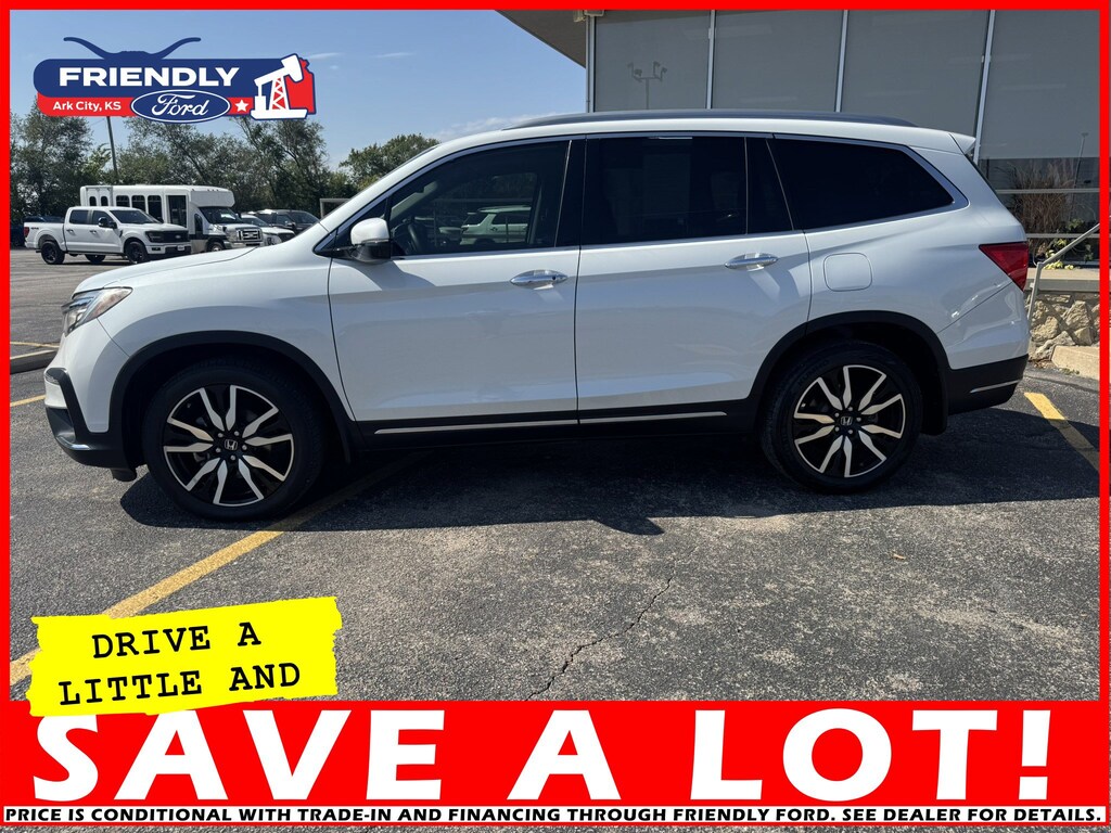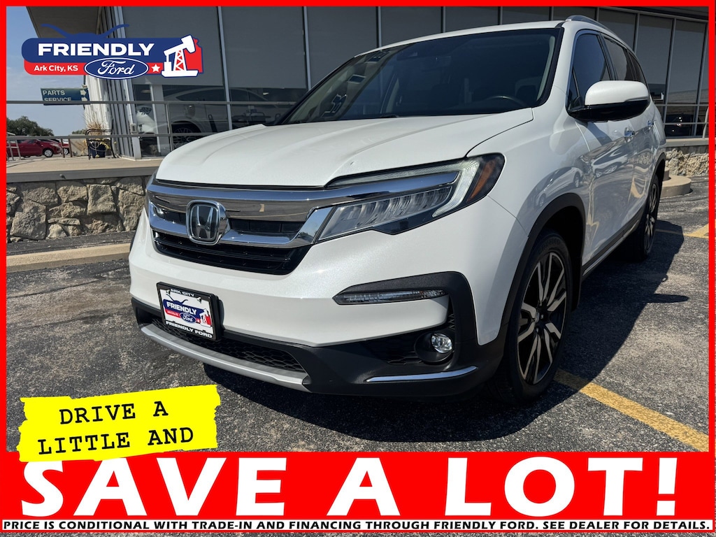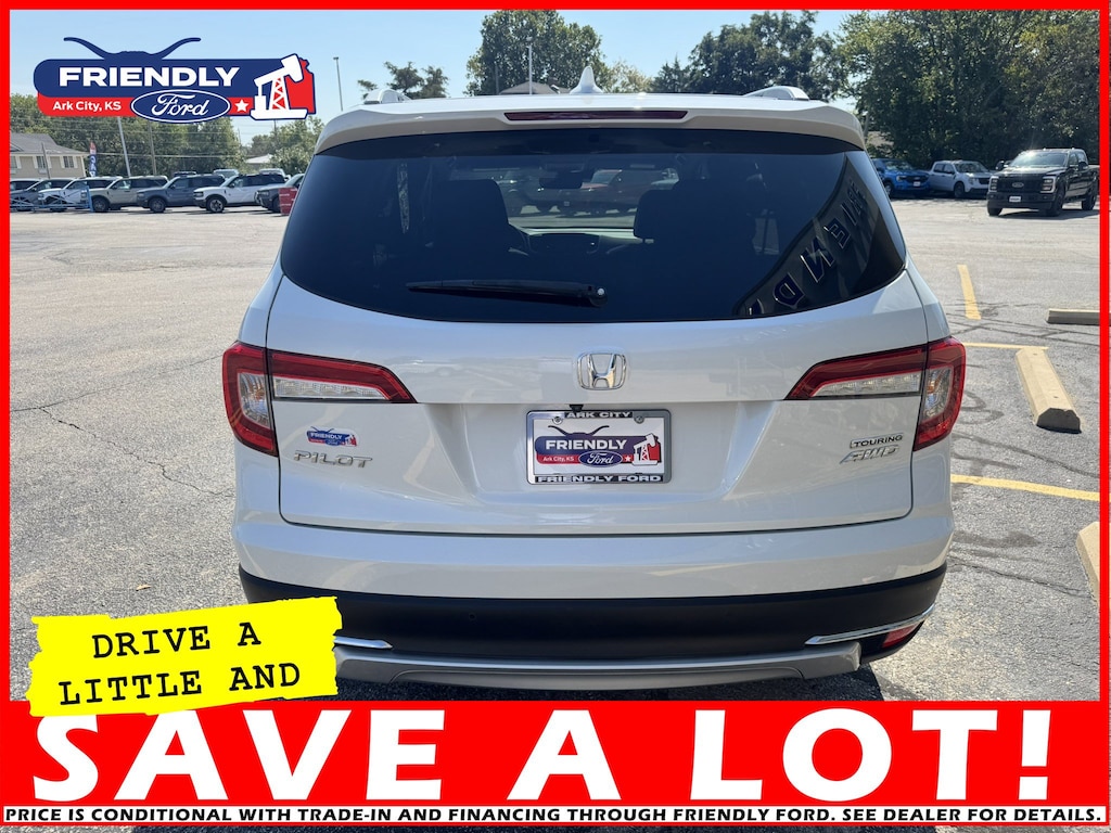 The 2020 Honda Pilot Touring with front-wheel drive achieves an estimated 20 MPG city and 27 MPG highway.