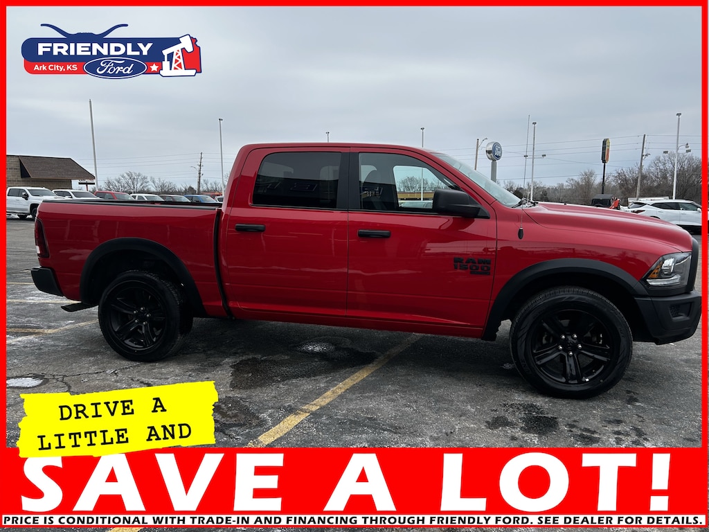 Warlock Package Accents: Includes a black powder-coated front and rear bumper, black grille with Ram lettering, and black exterior badging.