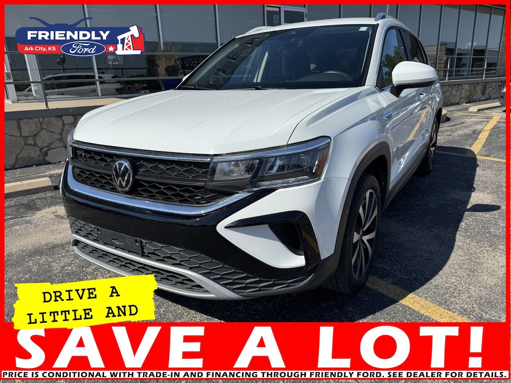 The 2023 Volkswagen Taos 1.5T SE is a versatile, compact SUV offering a 1.5-liter turbocharged four-cylinder engine, producing 158 horsepower. Standard features include a comfortable interior, a user-friendly infotainment system, advanced safety features like blind-spot monitoring and automatic emergency braking, and desirable amenities such as heated seats and a backup camera. With impressive fuel economy, especially on the front-wheel-drive models, and ample cargo and passenger space, the Taos SE provides a compelling blend of utility, efficiency, and value in the compact SUV segment.